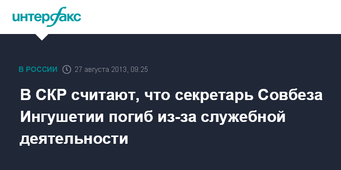 В СКР считают, что секретарь Совбеза Ингушетии погиб из-за служебной деятельности