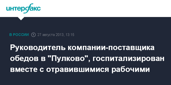 Санкт-Петербург. 27 августа. INTERFAX.RU - Среди госпитализированных с отравлением рабочих, задействованных на строительстве нового терминала аэропорта "Пулково", оказался один из руководителей компании-поставщика обедов, сообщает пресс-служба управлении на транспорте МВД по СЗФО во вторник.