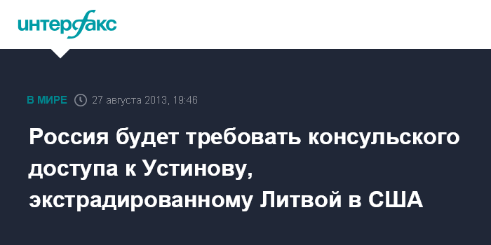 Россия будет требовать консульского доступа к Устинову, экстрадированному Литвой в США