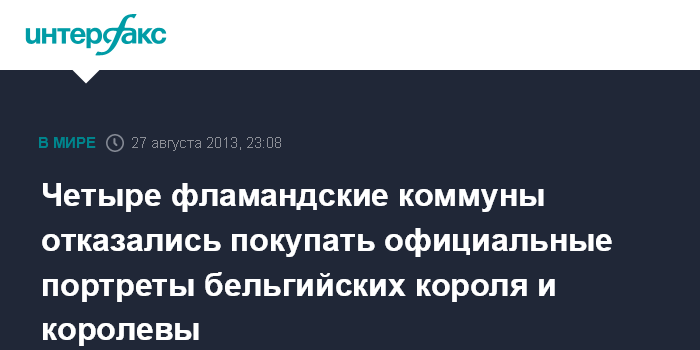 Брюссель. 27 августа. INTERFAX.RU - Во фламандской провинции Лимбург советы четырех коммун отказались от традиционной покупки официальных портретов короля бельгийцев Филиппа и его супруги королевы Матильды, сообщили во вторник СМИ Бельгии.