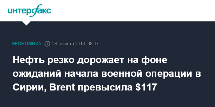 28 августа. FINMARKET.RU - Цены на нефть вчера взлетели на опасениях начала полномасштабной военной операции силами западных стран в Сирии.