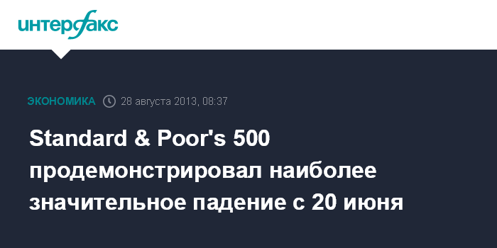 Standard & Poor's 500 продемонстрировал наиболее значительное падение с 20 июня