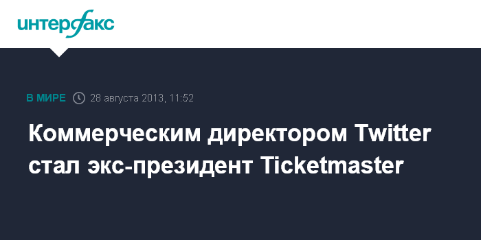 Коммерческим директором Twitter стал экс-президент Ticketmaster