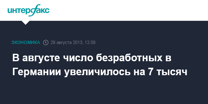 Количество безработных в Германии выросло в августе 2013 года на 7 тыс. - до 2,95 млн человек.