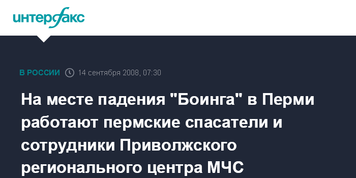 На месте падения "Боинга" в Перми работают пермские спасатели и сотрудники Приволжского регионального центра МЧС