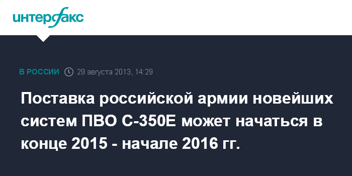 Жуковский (Московская область). 29 августа. INTERFAX.RU - Концерн ПВО "Алмаз-Антей" рассчитывает в 2014 году подписать первые контракты по новейшей зенитной ракетной системе С-350Е, а в конце 2015 г. или начале 2016 г. начать ее серийное производство.