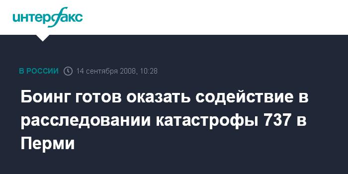 Боинг готов оказать содействие в расследовании катастрофы 737 в Перми