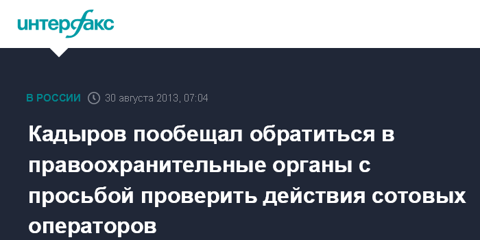 Москва. 30 августа. ИНТЕРФАКС - Депутаты Госдумы от Чечни обратятся в пятницу в Генпрокуратуру и СКР с запросом о проверке действий сотовых операторов "Мегафон" и "Билайн", сообщил глава Чечни Рамзан Кадыров в "Инстаграме" в ночь на пятницу.