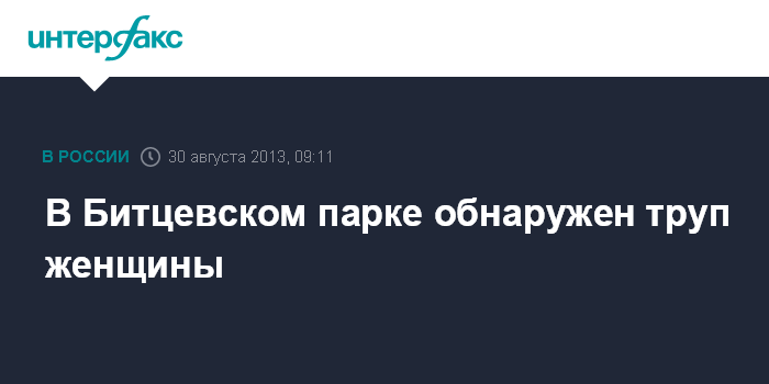 Москва. 30 августа. INTERFAX.RU - Жестокое убийство молодой женщины совершено в Битцевском парке Москвы, сообщил "Интерфаксу" источник в правоохранительных органах.