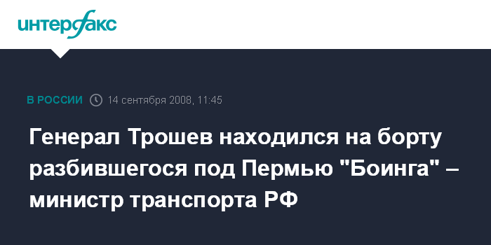 Генерал Трошев находился на борту разбившегося под Пермью "Боинга" – министр транспорта РФ