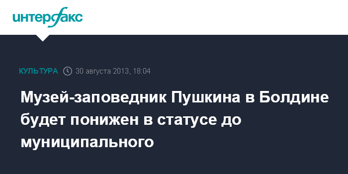 Музей-заповедник Пушкина в Болдине будет понижен в статусе до муниципального