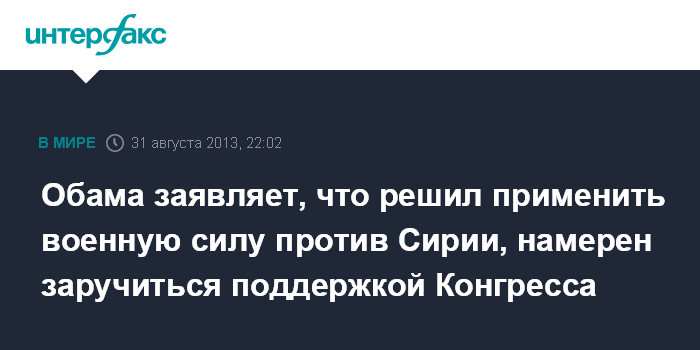 Президент также сообщил о втором решении, которое он принял в связи с событиями в Сирии. Он указал, что намерен "заручиться поддержкой Конгресса США".