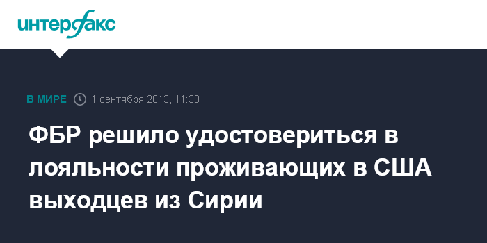 Вашингтон. 1 сентября. INTERFAX.RU - Руководство ФБР приняло решение об усилении наблюдения за проживающими в США выходцами из Сирии, сообщает в воскресенье газета The New York Times.