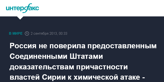 "В действительности, мы направили в Россию наших людей, которые предоставили имеющиеся у нас доказательства, касающиеся последней химической атаки. И они (российская сторона - ИФ) предпочли - я буквально имею в виду предпочли - не поверить им. Или по меньшей мере не признать это публично", - сказал Дж.Керри в воскресенье в интервью телеканалу АВС.