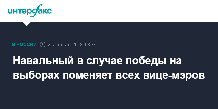 Москва. 2 сентября. INTERFAX.RU - Никто из нынешних вице-мэров не останется на своих должностях в случае победы в выборах мэра Москвы Алексея Навального. Об этом он заявил в интервью, которое публикуют "Ведомости" в понедельник.