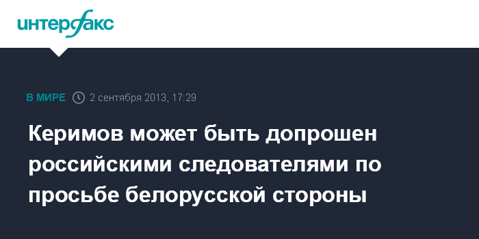 Москва/Минск. 2 сентября. INTERFAX.RU - Российский сенатор Сулейман Керимов может быть допрошен в Москве по просьбе белорусской стороны, либо посредством видеомоста, сообщил "Интерфаксу" источник в правоохранительных органах.
