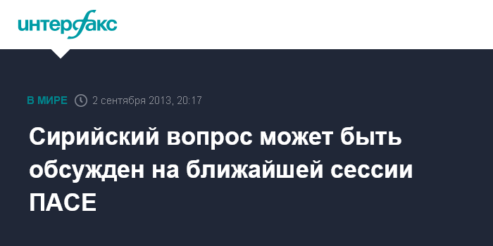 Сирийский вопрос может быть обсужден на ближайшей сессии ПАСЕ