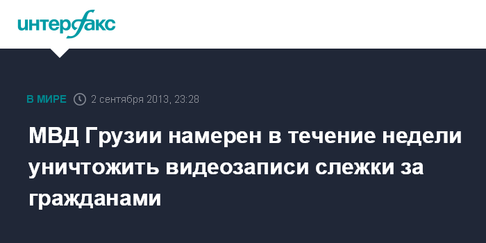 Тбилиси. 2 сентября. INTERFAX.RU - Сделанные при прежней власти в Грузии видеозаписи, касающиеся личной жизни граждан, будут уничтожены в присутствии представителей СМИ 5 сентября в 15:00, сообщила руководитель службы по связям с общественностью МВД Грузии Нино Гиоргобиани журналистам вечером в понедельник.