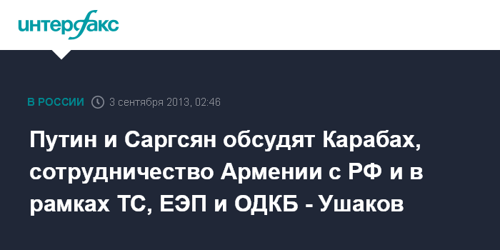 Путин и Саргсян обсудят Карабах, сотрудничество Армении с РФ и в рамках ТС, ЕЭП и ОДКБ - Ушаков
