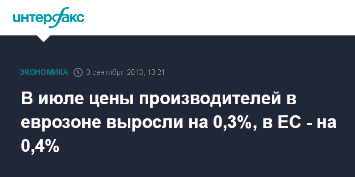 3 сентября. FINMARKET.RU - В июле 2013 года цены производителей в еврозоне (индекс PPI) выросли на 0,3% по отношению к предыдущему месяцу, когда они оставались стабильными, свидетельствуют данные Евростата. В годовом выражении цены в июле увеличились на 0,2% после роста на 0,3% в июне.
