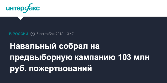Москва. 5 сентября. INTERFAX.RU - Штаб кандидата в мэры Москвы Алексея Навального за время предвыборной кампании собрал более 100 млн рублей в качестве пожертвований.
