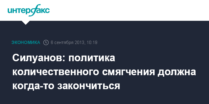 Силуанов: политика количественного смягчения должна когда-то закончиться