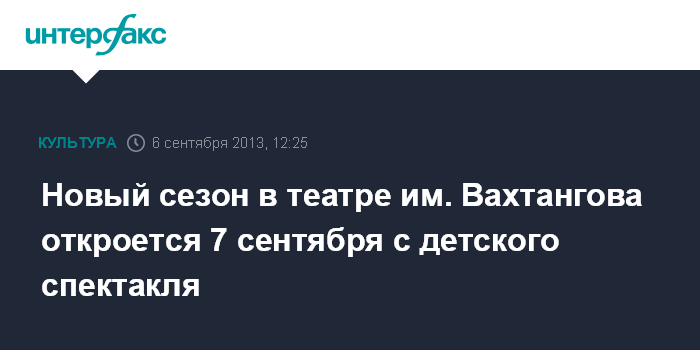 Новый сезон в театре им. Вахтангова откроется 7 сентября с детского спектакля