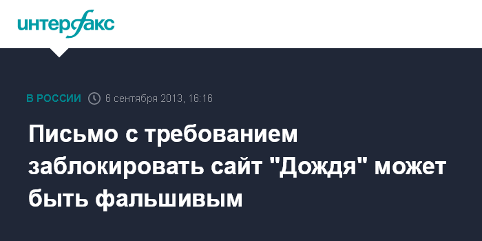 Письмо с требованием заблокировать сайт "Дождя" может быть фальшивым