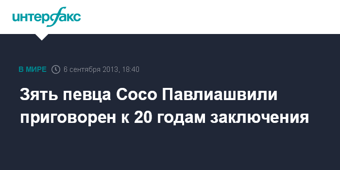 Зять певца Сосо Павлиашвили приговорен к 20 годам заключения
