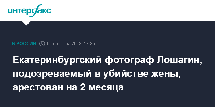 Екатеринбург. 6 сентября. INTERFAX.RU - Первоуральский городской суд (Свердловская область) в пятницу арестовал екатеринбургского фотографа Дмитрия Лошагина, подозреваемого в убийстве жены.