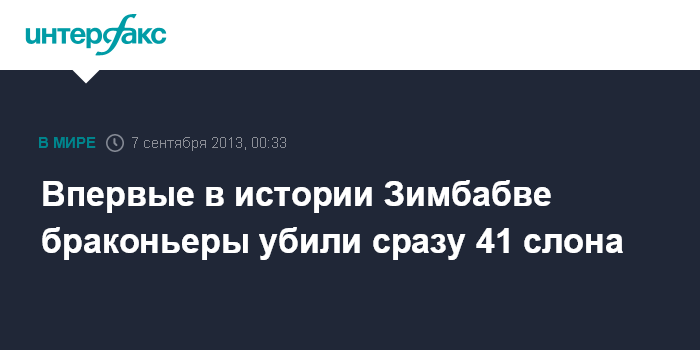 Как сообщает британская телерадиовещательная корпорация Би-би-си со ссылкой на пресс-секретаря национальных природных парков Зимбабве, у водопоя в нацпарке Хванге найдена 41 туша мертвых слонов со срезанными бивнями.