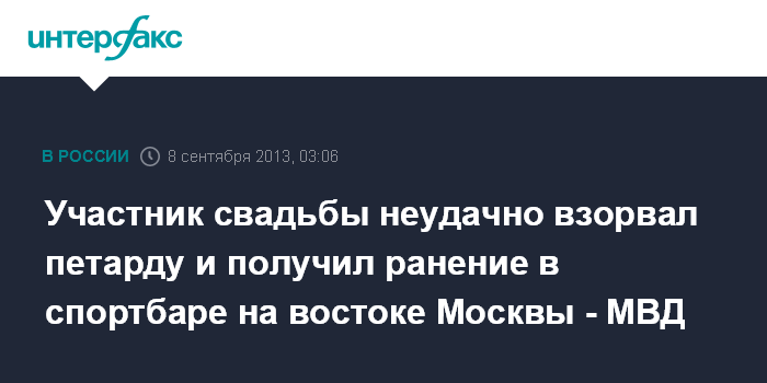 Участник свадьбы неудачно взорвал петарду и получил ранение в спортбаре на востоке Москвы - МВД