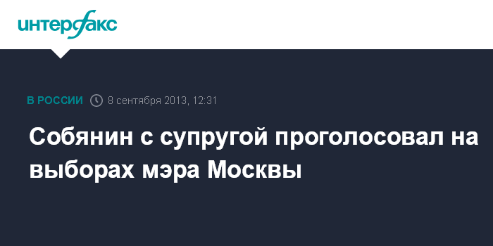 Москва. 8 сентября. INTERFAX.RU - Врио мэра Москвы Сергей Собянин проголосовал на избирательном участке по месту жительства в центре Москвы.