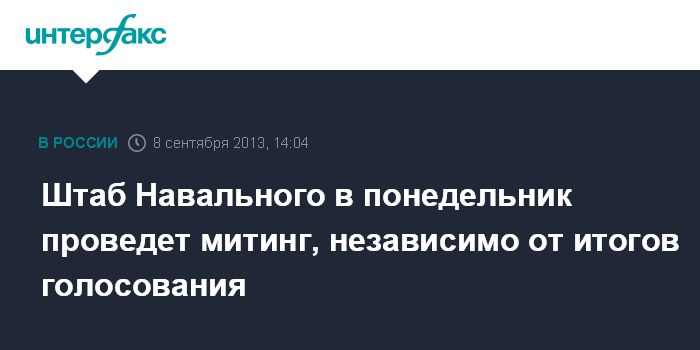 Москва. 8 сентября. INTERFAX.RU - Предвыборный штаб кандидата в мэры Москвы Алексея Навального намерен 9 сентября провести митинг на Болотной площади независимо от итогов голосования.