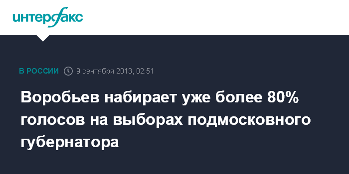 "По результатам подсчета голосов с 50% УИК продолжает лидировать А.Воробьев с 80,13%", - заявил И.Вильданов.