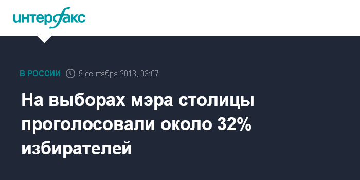 Москва. 9 сентября. INTERFAX.RU - По предварительным данным, явка избирателей на выборах мэра Москвы составила около 32%, сообщил "Интерфаксу" представитель Мосгоризбиркома.
