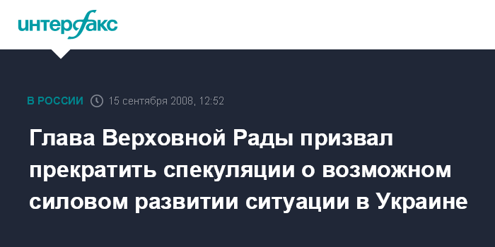 Москва. 15 сентября. INTERFAX.RU – Председатель Верховной Рады Арсений Яценюк призывает прекратить спекуляции на тему возможности силового развитии ситуации в Украине.