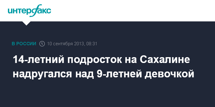Южно-Сахалинск. 10 сентября. INTERFAX.RU - Уголовное дело возбуждено в отношении 14-летнего школьника Тымовского района Сахалинской области, надругавшегося над малолетней девочкой, сообщает пресс-служба Следственного управления СКР по региону.