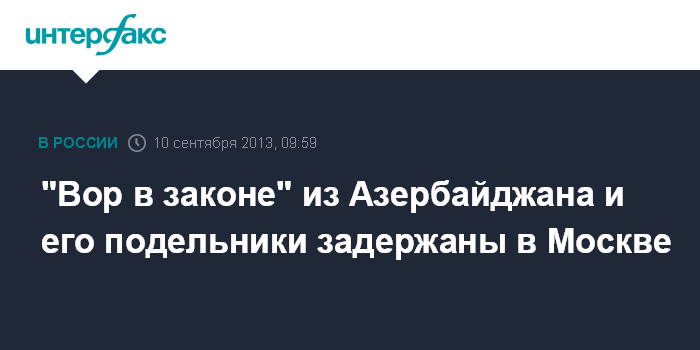 Москва. 10 сентября. INTERFAX.RU - Подозреваемый в убийстве "вор в законе" из Азербайджана задержан в Москве, сообщили в пресс-центре МВД.