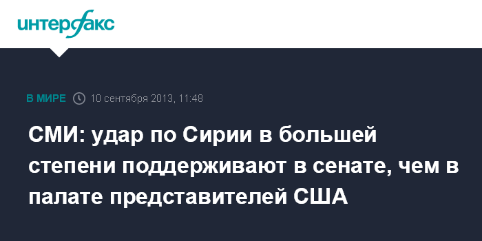 СМИ: удар по Сирии в большей степени поддерживают в сенате, чем в палате представителей США
