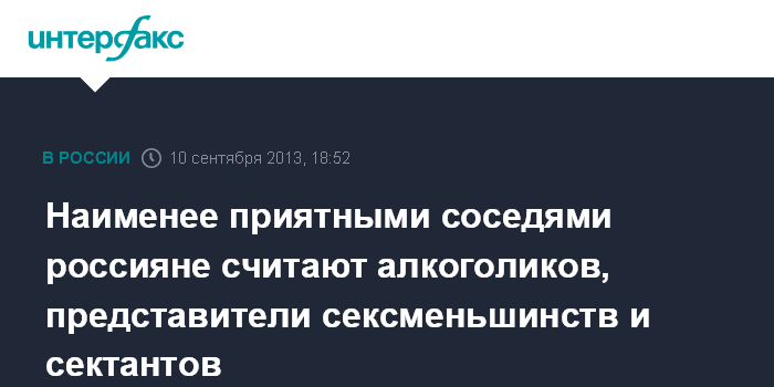 Наименее приятными соседями россияне считают алкоголиков, представители сексменьшинств и сектантов