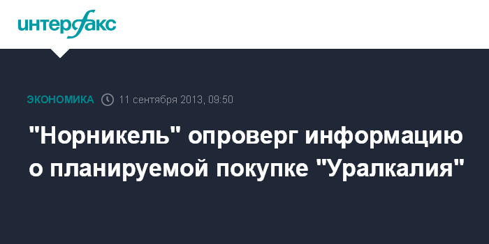 "Норникель" опроверг информацию о планируемой покупке "Уралкалия"