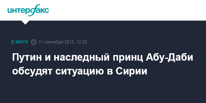 Путин и наследный принц Абу-Даби обсудят ситуацию в Сирии