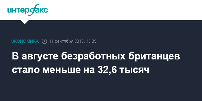 В августе безработных британцев стало меньше на 32,6 тысяч