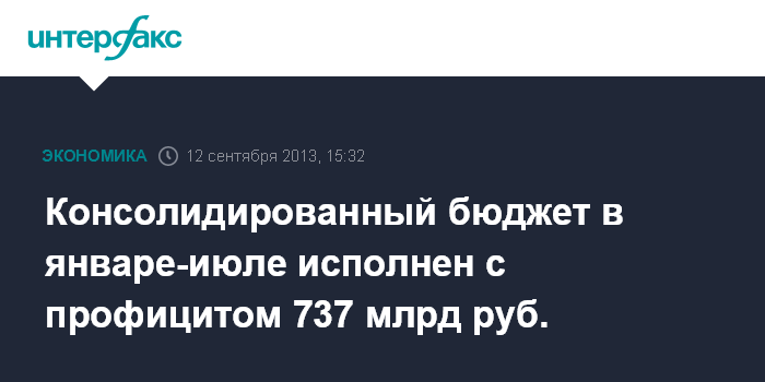 Консолидированный бюджет в январе-июле исполнен с профицитом 737 млрд руб.