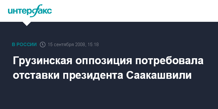 Москва. 15 сентября. INTERFAX.RU – Оппозиционная Республиканская партия Грузии требует отставки президента Михаила Саакашвили.