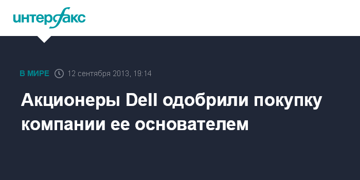 Раунд-Рок. 12 сентября. INTERFAX.RU - Акционеры производителя компьютеров Dell Inc. проголосовали в поддержку предложения основателя и генерального директора компании Майкла Делла о покупке компании, сообщает агентство Bloomberg.