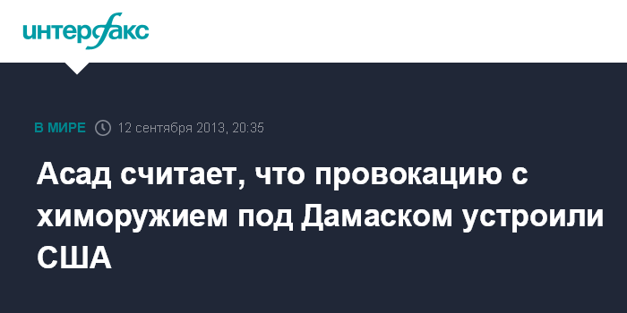 Асад считает, что провокацию с химоружием под Дамаском устроили США