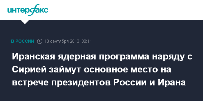 Иранская ядерная программа наряду с Сирией займут основное место на встрече президентов России и Ирана
