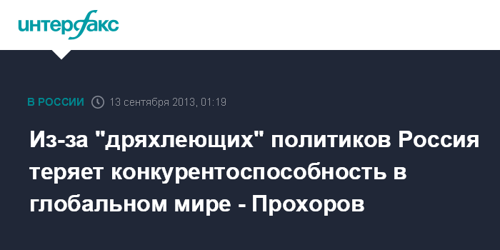 Из-за "дряхлеющих" политиков Россия теряет конкурентоспособность в глобальном мире - Прохоров